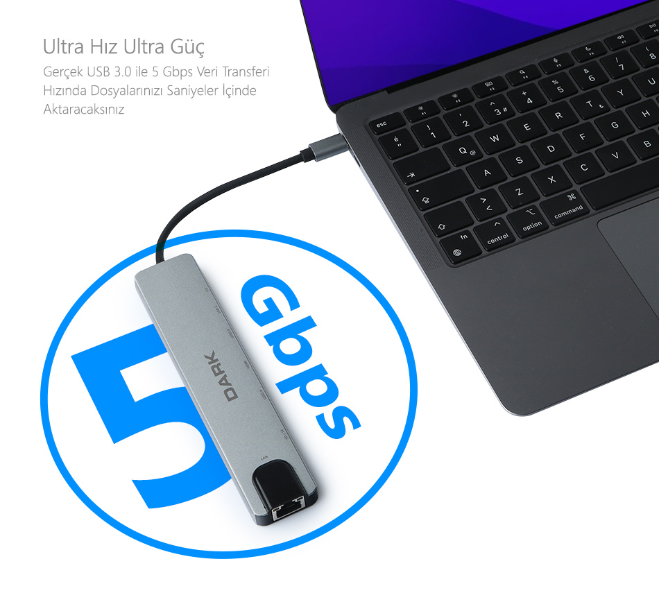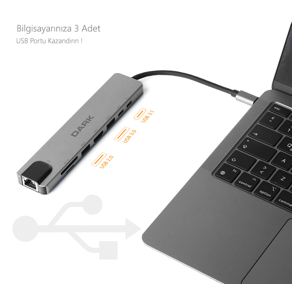 DARK USB3.1 Type-C 8 in 1 Adaptörü ile Tüm Bağlantılar Emrinizde !