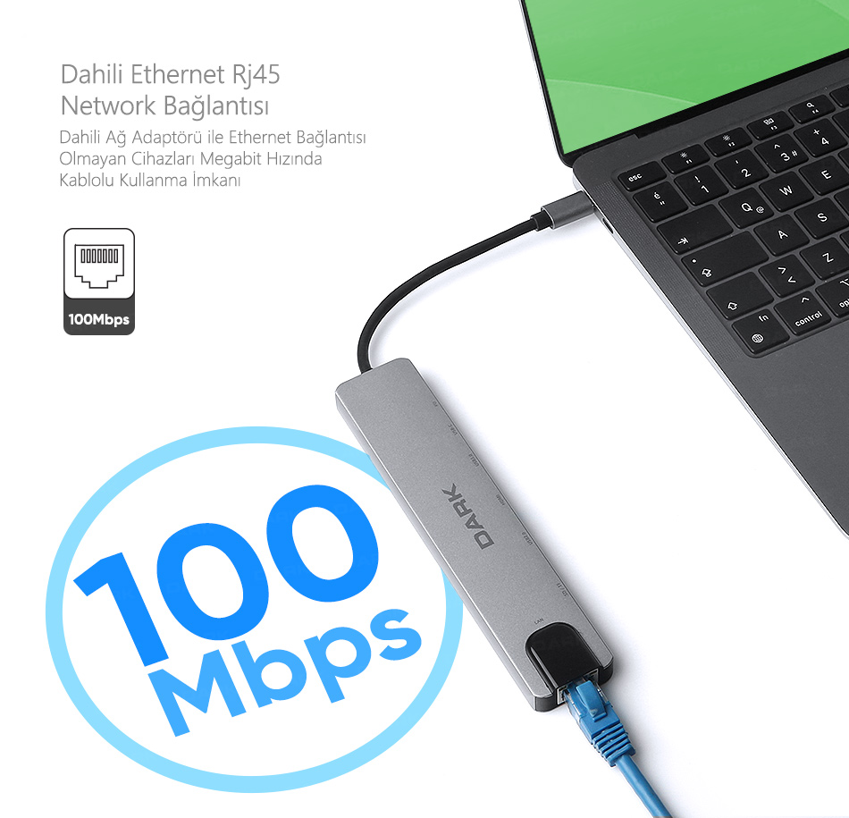 Standart kablolu ethernet girişine sahip Dark U31X40 ile yeni jenerasyon Ultrabook, Netbook ve Macbook Air gibi cihazlarınıza interneti kablolu getirebileceksiniz. Kurulum gerektirmeden sadece Type-C portunuza giriş sağlayarak ağ girişi bulunmayan veya ağ girişi bozulmuş tüm bilgisayarlarınızda kablolu interneti kullanmanın konforunu yaşayın.