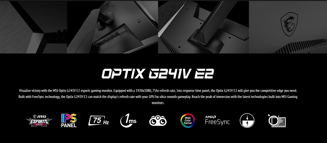 MSI Optix G241V E2 espor oyun monitörü ile zaferi görselleştirin. 1920x1080, 75 hz yenileme hızı, 1 ms yanıt süresi paneli ile donatılmış Optix G241V E2 size ihtiyacınız olan rekabet avantajını sağlayacaktır. FreeSync teknolojisiyle oluşturulan Optix G241V E2, ultra akıcı oyun için ekranın yenileme oranını GPU'nuzla eşleştirebilir. MSI Gaming monitörlerle birlikte gelen en yeni teknolojiler sayesinde oyuna bizzat dahil olmanın keyfini yaşayacaksınız.