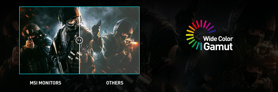 Optix serisi oyun monitörleri, genel monitör tiplerine oranla daha geniş renk gamını kapsar. Oyunda renk ve detaylar daha gerçekçi hale geldiği için kendinizi aksiyonun tam ortasında hissedersiniz.
